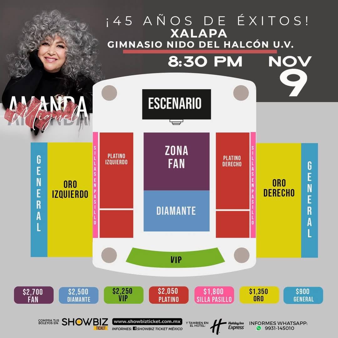Xalapa, Ver., a 30 de septiembre de 2025.- La reconocida cantante Amanda Miguel llegará a la capital veracruzana para celebrar sus 45 años de carrera artística con un concierto que promete ser inolvidable. La cita es el sábado 9 de noviembre a las 8:30 de la noche en el Gimnasio Nido del Halcón de la Universidad Veracruzana, donde interpretará los grandes éxitos que la han consolidado como una de las voces más emblemáticas de la música en español.