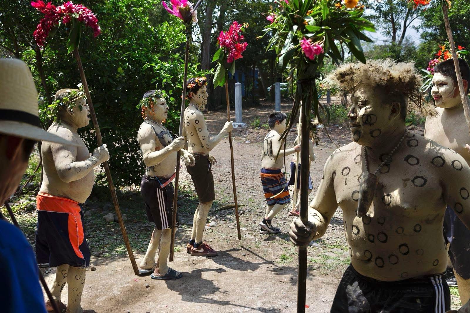 Uno de los momentos más representativos es la danza de los llamados “Mecos”, personajes cubiertos con barro, ceniza o pigmentos naturales, quienes recorren la comunidad al ritmo de música tradicional, evocando ceremonias ancestrales ligadas a la naturaleza y al equilibrio espiritual.
