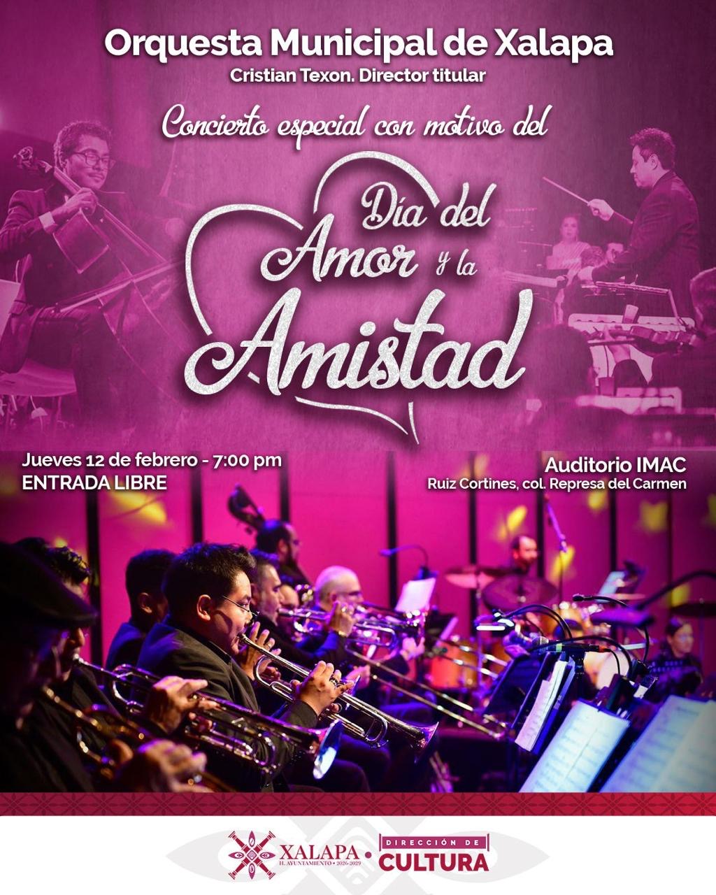 Xalapa, Ver., a 6 de enero de 2026.- La Orquesta Municipal de Xalapa ofrecerá un concierto especial con motivo del Día del Amor y la Amistad, como parte de las actividades culturales abiertas al público que se realizan en la capital veracruzana.
